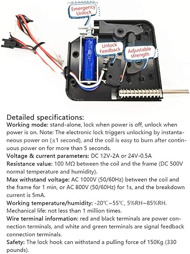 Vientiane Elektroschloss DC 12V Elektromagnetische Verriegelungstür Schrank Schublade Elektromagnetische Verriegelung Mit Notentriegelung Für Türzugriffskontrollsystem