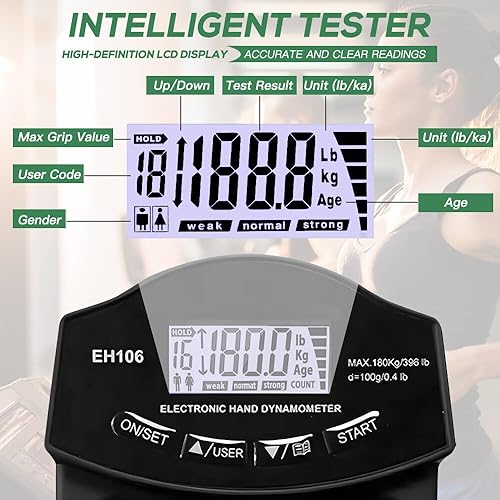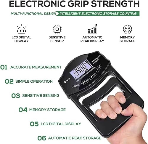 ZOYDP Digitaler Handkraftmessgerät 396lb/180Kg, Griffkraft Messgerät Digital, LCD Display Grip Strength Tester, Elektronischer Hand Dynamometer mit USB-Ladekabel (Schwarz)