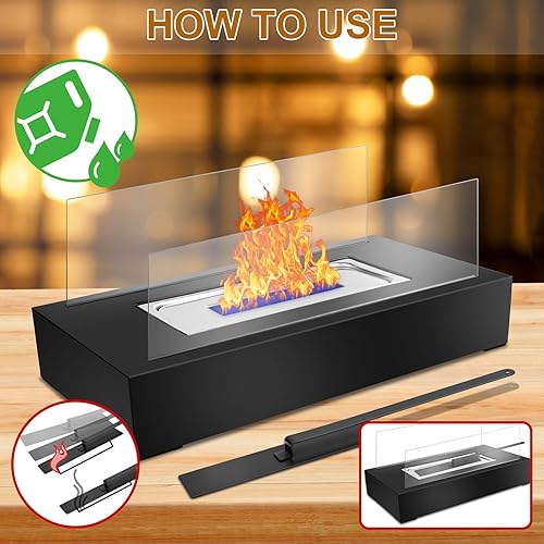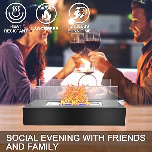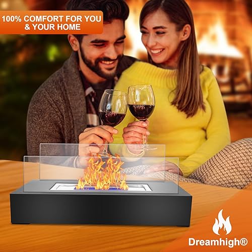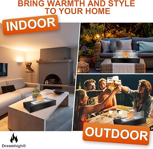 Dreamhigh® Bioethanol Kamin, Tischkamin Indoor, Tischfeuer für Indoor & Outdoor mit Deko Steinen, Tragbare Bio Ethanol Feuerstelle, Unendliche Brenndauer