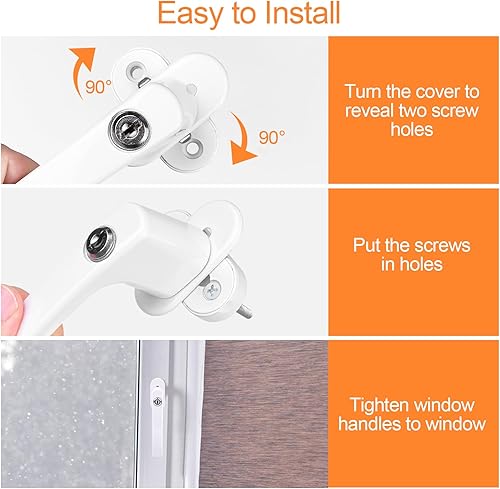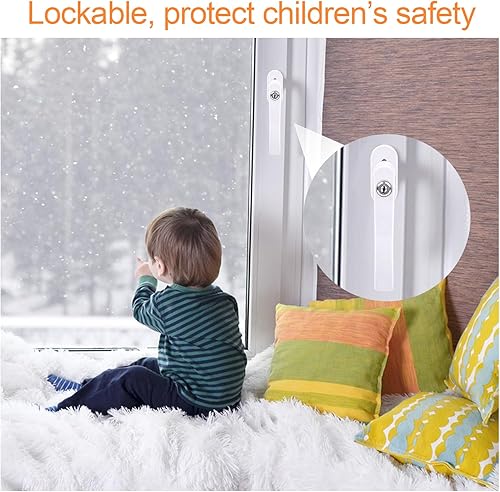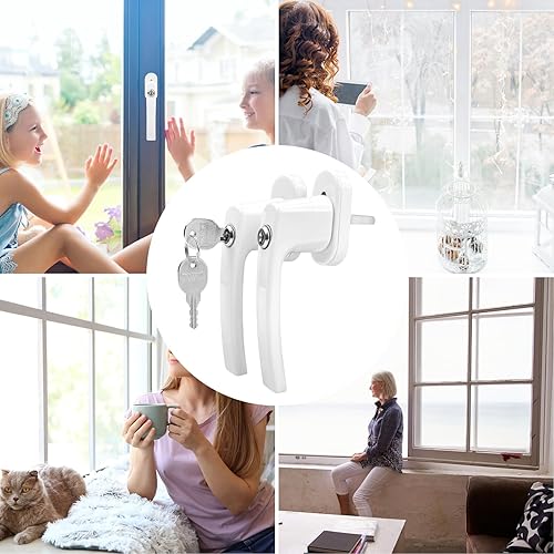 Avesteir 2 Stück fenstergriffe abschliessbar, fenstergriff abschließbar Aluminium, balkontürgriff kindersicherung mit Schlüsseln und Schrauben, Fenstersicherung, für Fenster & Terrassentür (weiß)