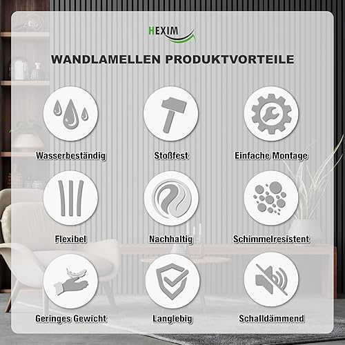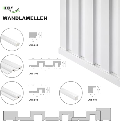HEXIM Lamellenwand HDPS Polystyrol - Lamellen Wandverkleidung Akustikpaneele Wandpaneele Holz Imitat - (1 Paneel - weiß) 3D Wandpaneele Holzpaneele Bad