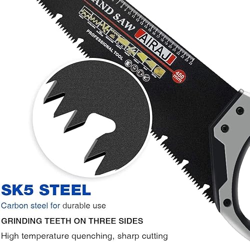 AIRAJ 45CM Professionelle Fuchsschwänz Handsäge,Die Handsäge hat ein abgestuftes Lineal für präzises Schneiden,Ideal zum Sägen,Trimmen,Schneiden und Schneiden von Holz,Fuchsschwanz Säge-handbügelsäge