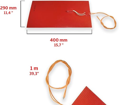 GOLDMAN SERVICE Heizelement aus Silikon, flexibel, flexibel, ultradünn, mit Temperaturbegrenzer, 1000 W, 220 V, L 290 x 400 mm (1000 W)
