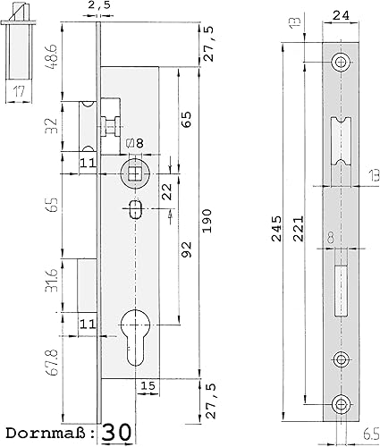 Rohrrahmenschloss 1004 Stulpe 24 x 245mm verzinkt Nuss 8mm Entferung 92 Dornmaß 22 mm