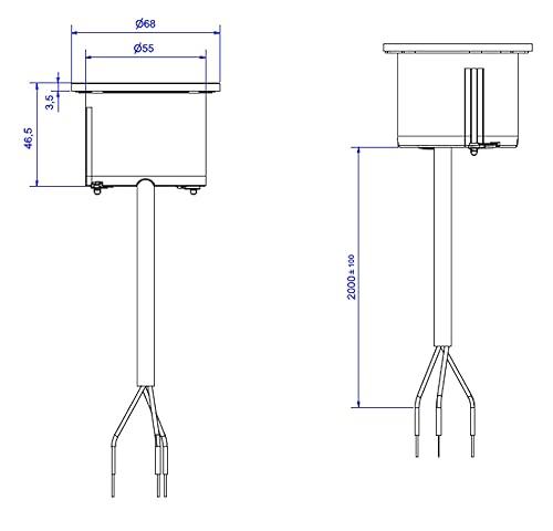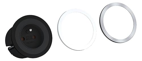 BACHMANN Einbausteckdose PIX 1x Steckdose mit 3 Zierringen (Schwarz, Weiß und Edelstahl-Optik) 2m Kabel Tischsteckdose für Küche, Büro oder Wohnraum Schwarz 926.001 (nur 45mm Einbautiefe)
