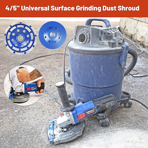 HERZO Absaughaube Set für Winkelschleifer inklusive 125mm DiamantSchleiftopf - robuste Aluminiumkonstruktion, hochwertiger Diamantschleiftopf 125mm