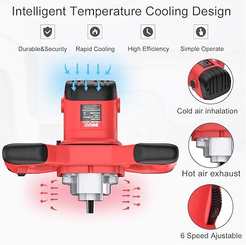 IMAYCC Mörtelrührer Rührwerk 2100W, 270-930U/min 6-Gang Einstellung Betonmischer 220V, M14 Spiralstange Rührer für Mörtel Ø 120 mm, Handrührgerät für Futter, Gips, Farbe Zementmischmaschine