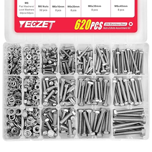 Yeezet M4 M5 M6 Schrauben und Muttern Sortiment aus 304 Edelstahl, 620 Stück Sechskantschrauben Unterlegscheiben Federringe & Muttern Kit