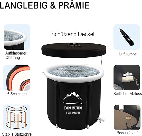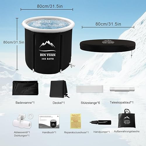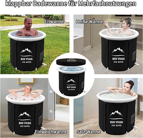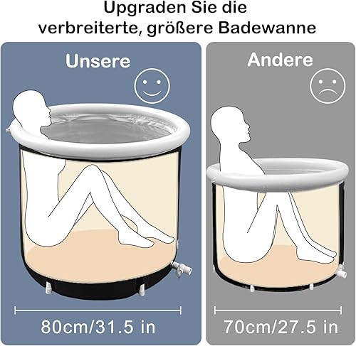 Faltbare Eisbad Badewanne mit Abdeckung 80cm Ø Large Aufblasbare Eisbaden Badewanne Erwachsene Eisfass Outdoor Ice Bath Tub Freistehende Eistonne Wanne Soaking Dusche Badefass cold plunge bathtub