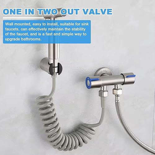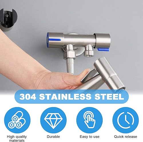 Bidet Handbrause Set, Premium Edelstahl Gebürstet Bidet Handbrause, Bidet Sprayer für Dusche Badezimmer Hygiene Toilettenpapier Windelreinigung, mit G1/2' Ventil und eine G3/8'