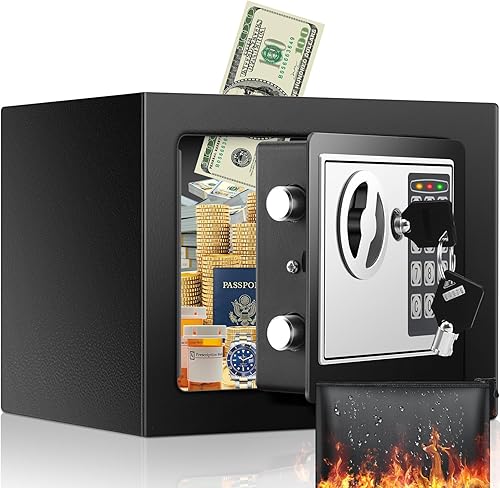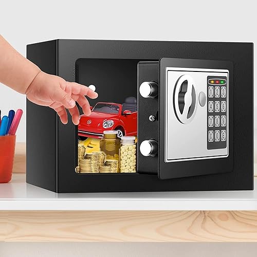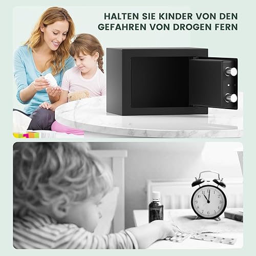 Mini Safe Tresor für Zuhause, Digitaler Tresor mit Ersatzschlüssel, Abnehmbarem Regal und Alarmanlage, Wandtresor mit Zahlenschloss für Bargeld Wichtiger Dokumente