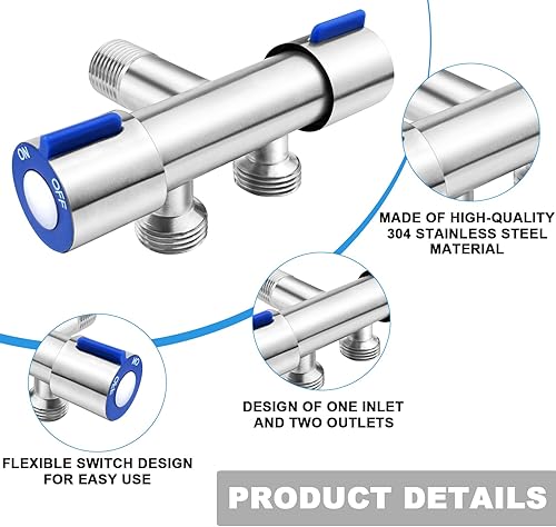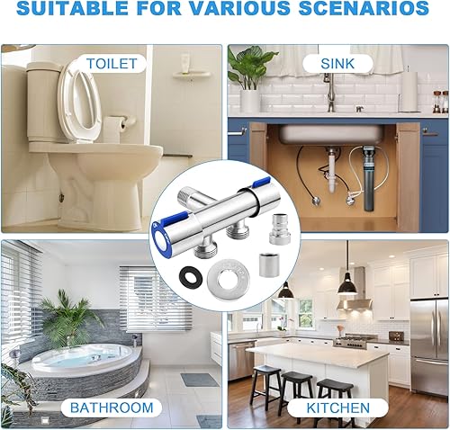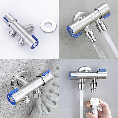 cersaty® 1 Stk Eckventil 1/2 Zoll, Doppel Geräteventil mit 2 Wasserhahnanschluss 2 Schlauchverschraubung und Klebeband für Badezimmer, WC, Waschbecken
