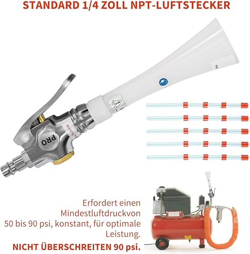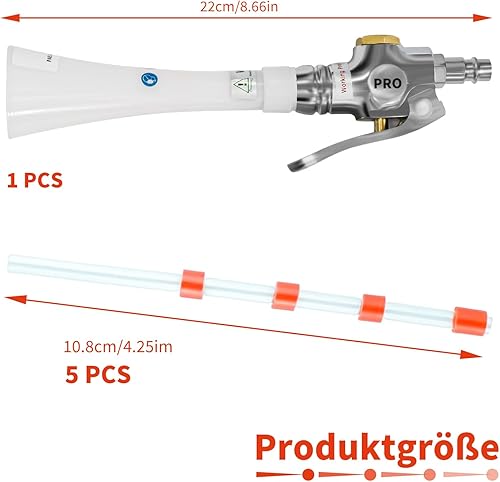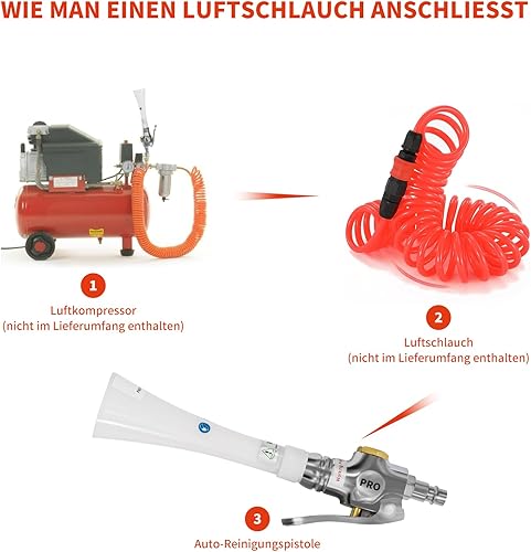 Druckluft Reinigungspistole für Kompressor 6-9 Bar, Druckluftpistolen Sprühen mit 5 Schlauch, Trocken Ausblaspistole, Hochdruck Luftpistole Sprühpistole, Druckluft Reiniger Blow Gun ohne Behälter