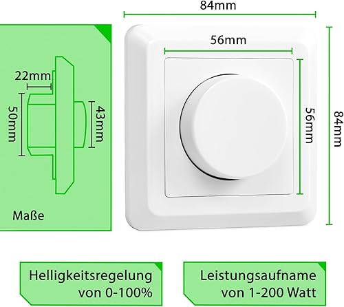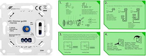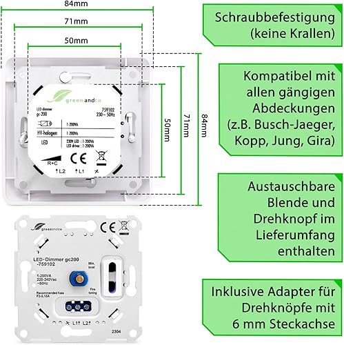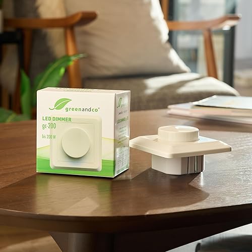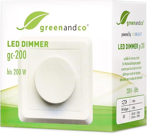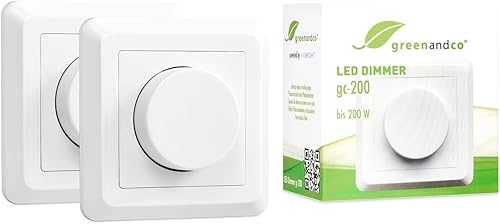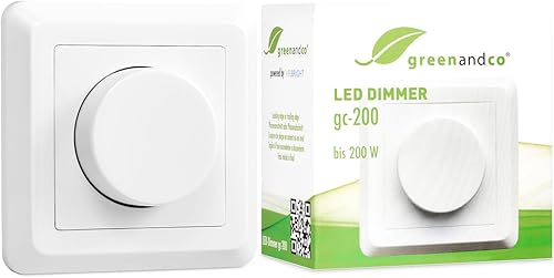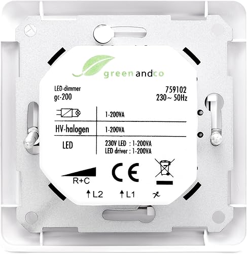 greenandco® gc-200 Unterputz LED und Halogen Dimmer 1-200 Watt, auch für herkömmliche Leuchtmittel und für Wechselschaltungen geeignet, weiß