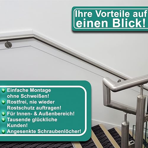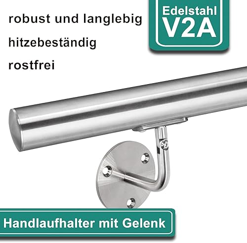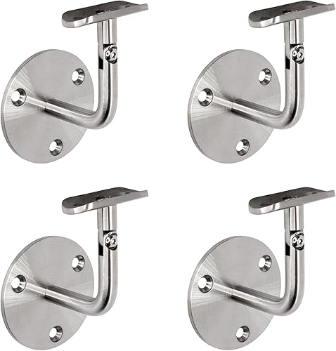PRIOstahl Handlaufhalter Handlauf Wandhalter Handlaufstütze - 4 x Handlaufträger an die Wand Stellbar für Rundrohr Ø42,4 mm mit 3-Loch Befestigung aus Edelstahl V2A für Geländer Rohr Treppe