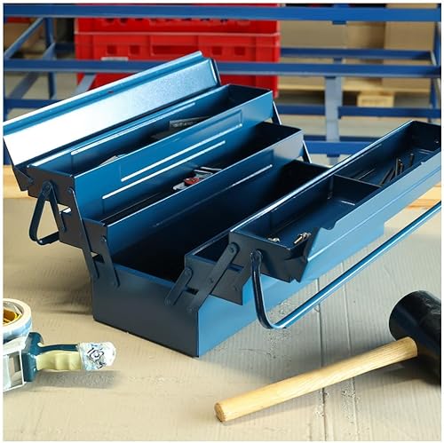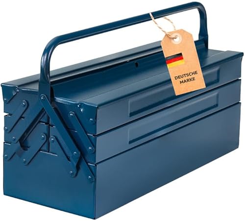 Dönges Metall Werkzeugkasten leer mit 6 Fächern | HxBxT 53 x 20 x 20cm, mit 21 L Volumen | Robust & zuverlässig Made in EU | Retro Profi Werkzeugkoffer ohne Werkzeug | Werkzeugkiste, werkzeugbox