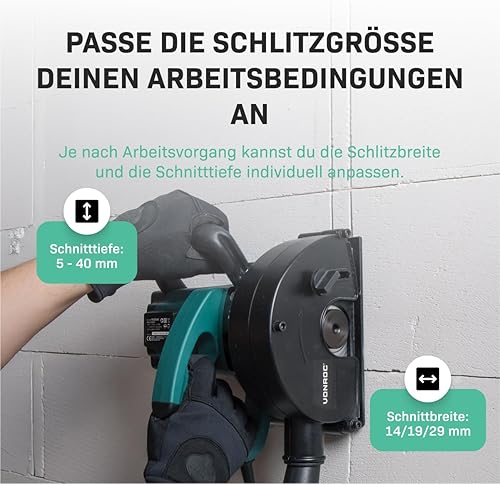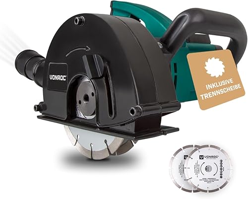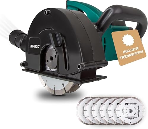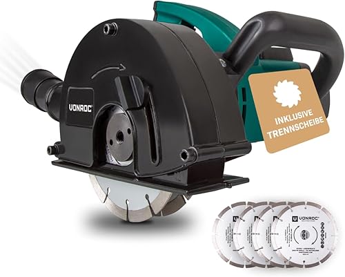 VONROC Schlitzfräse Mauernutfräse mit Absaugung [1700W] - Nutfräser für Kabelnut [14/19/29mm] - Schlitzmaschine 150mm mit Schnittiefe [4-40mm] inklusive 4 Diamantscheiben
