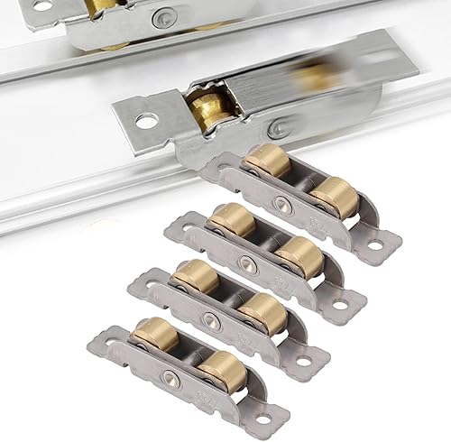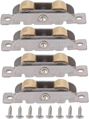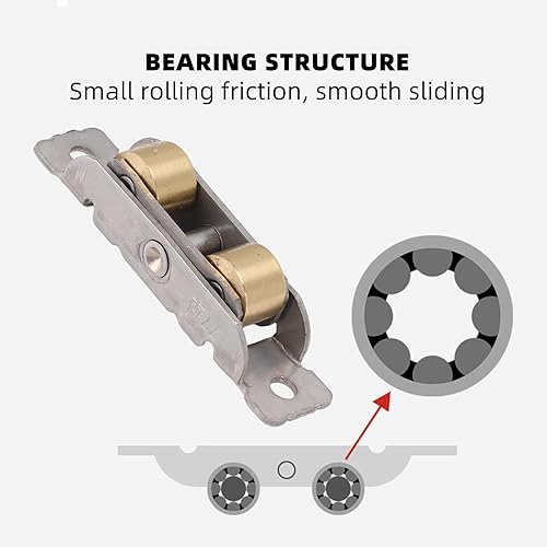 4-teilige Schiebetür-Tandem-Rollenbaugruppe Edelstahl-Kupfer-Kugellager-Türrolle für Glastüren (Flaches Rad)