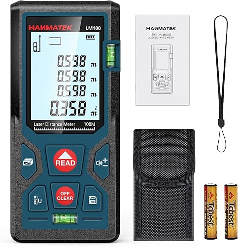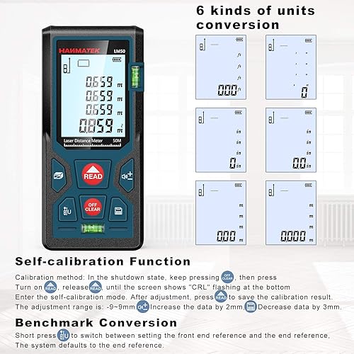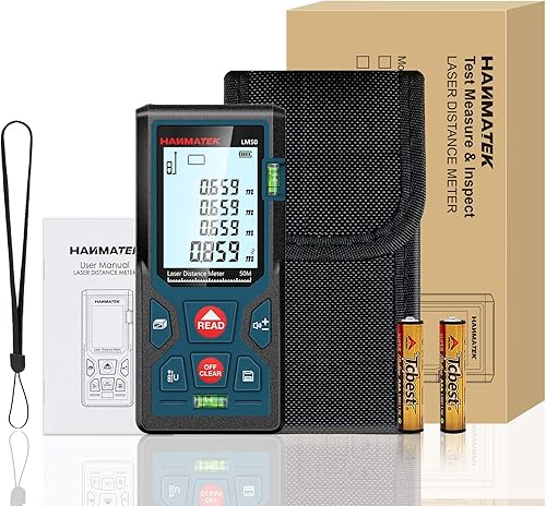 Entfernungsmesser, HANMATEK LM50 50M Digitales Laser Entfernungsmesse mit LCD Hintergrundbeleuchtung M/In/Ft mit Mehreren Messmodi wie Pythagoras/Abstand/Fläche/Volumen Messungen,IP54