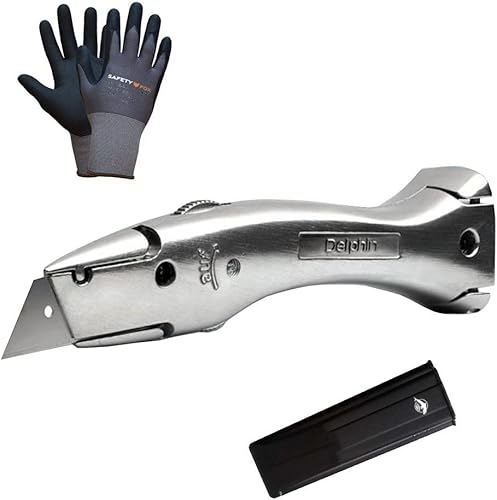 Teppichmesser I Universalmesser'Delphin 03' I Das Originial incl. 1 Paar Schutzhandschuhe