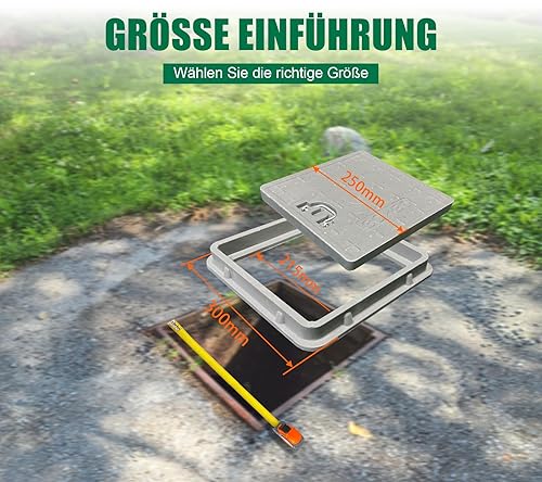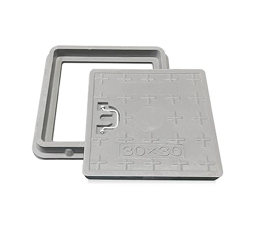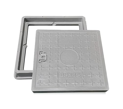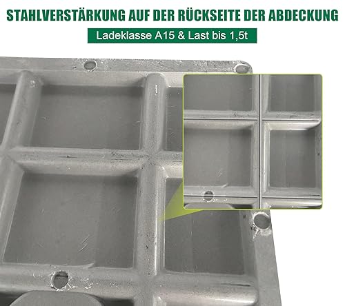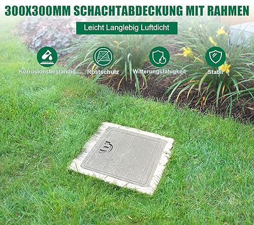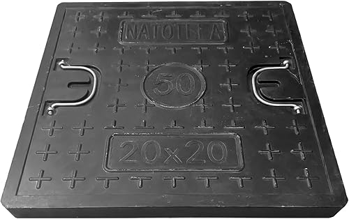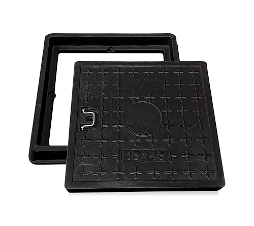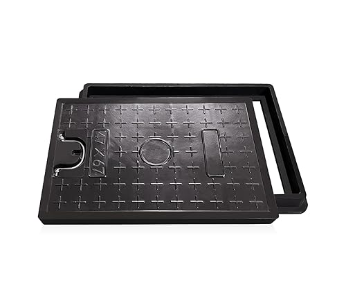 NATOTELA 600x600mm GFK Schachtabdeckung und Rahmen Nettoöffnungsgröße 440x440mm Äußere Rahmengröße 600x600mm Größe des Deckels 500x500mm schwarz Schachtdeckel für Fussgängezonen und Garten