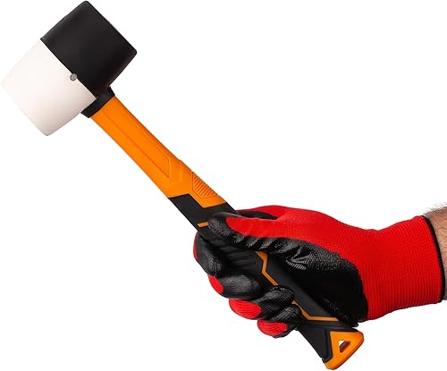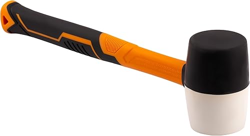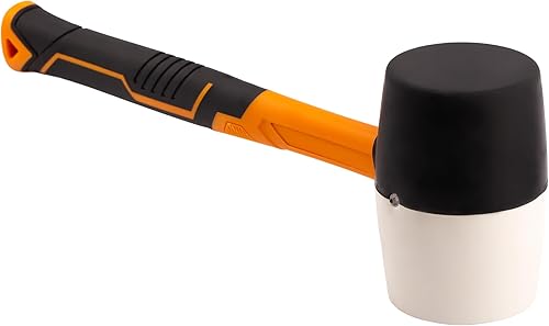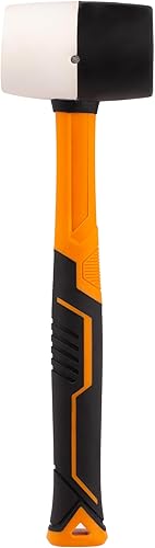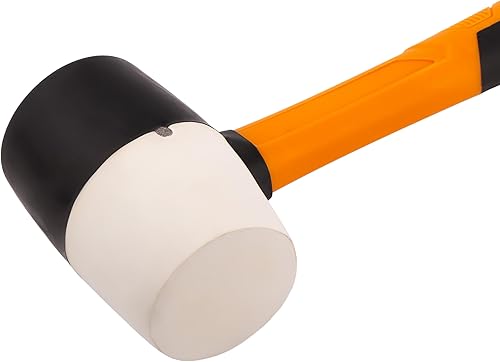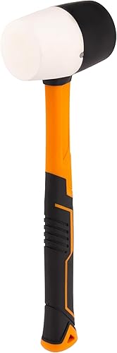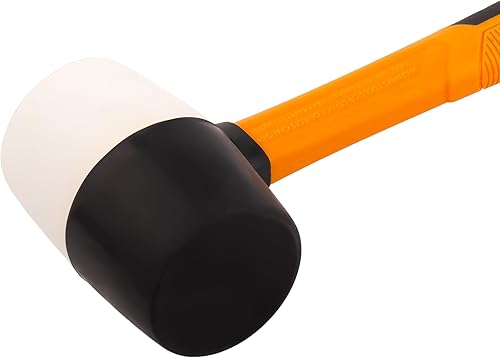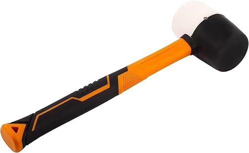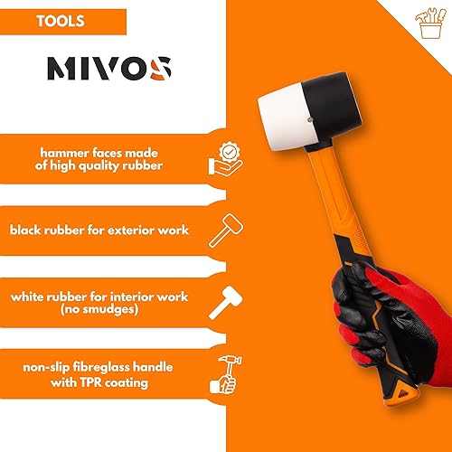 MIVOS Rückschlagfreier Schonhammer 1350g mit 2K Glasfaserstiel - Ø 65 mm - Pflastererhammer mit Doppelkopf aus Nylon und Gummi - Montagehammer mit wechselbarem Schlagkopf - Weiß Schwarz