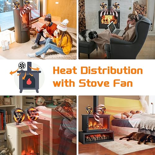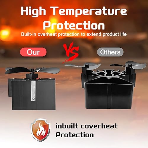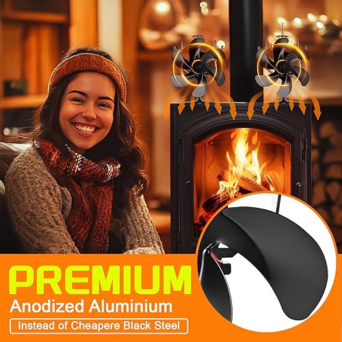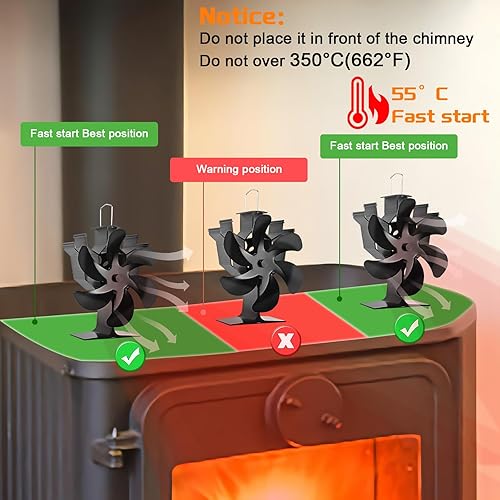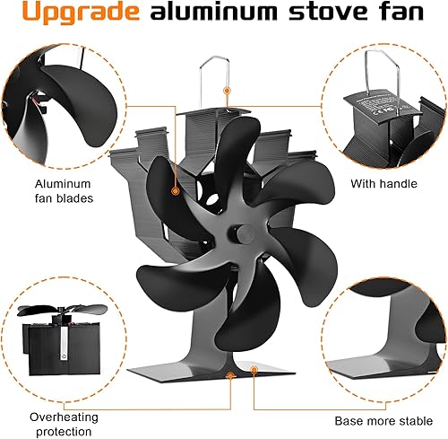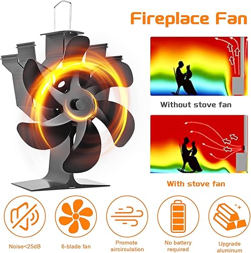 Kaminventilator, 6 Flügel-Ofenventilator Stromloser Leiser Betrieb, Wärmebetriebener Ventilator mit Thermometer, Kaminöfen Ohne Strom Hitzebetrieben Kamin Ventilator für Holz/Holzbrenner/Kamin Erhöht…