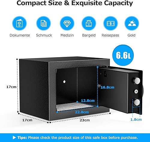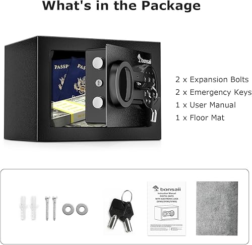 Geldtresor, Bonsaii Tresor, 6.6L Kleiner Safe für Zuhause mit Elektronischem Tastenfeld, Versteckter Sicherheitssafe mit Schlüssel aus Stahlkonstruktion, Mini Tresor für Zuhause, Büro, Hotel