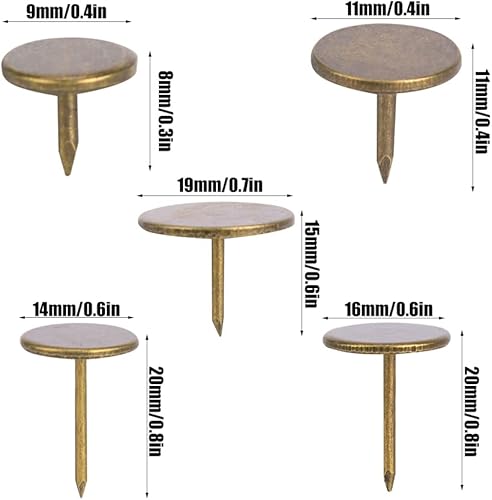 Jenngaoo 100 Stück Polsternägel, Flachkopf Reißnadel Sortimentssatz Möbel Nägel Eisen Künstlerbedarf Zubehör für Tür Sofa Polsterdekoration - Cyan Bronze(19 x 15MM)