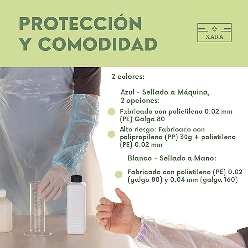 XARA - Ärmelabdeckung aus Polyethylen, 0,02 mm, verstellbar, Einweg-Schutz für Arme und Ärmel, handversiegelt, Weiß, 400 Stück…