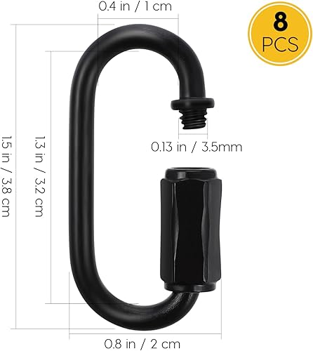 VILLCASE 8 Stück D-Form-Verschlusskarabiner, Schwarze Schnellglieder, Kettenglieder, Strapazierfähige Karabinerhaken, 38X20mm/1,5X0,8 Zoll, Für Camping, Wandern, Rucksäcke, SchlüsselanhäNger
