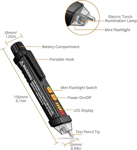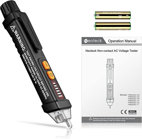 Neoteck Berührungsloser Spannungsprüfer 12-1000V Digital Kontaktloser Phasenprüfer AC Spannungstester berührungslos mit LED-Taschenlampe