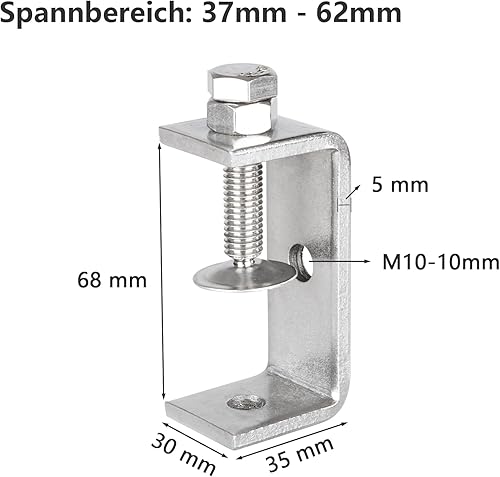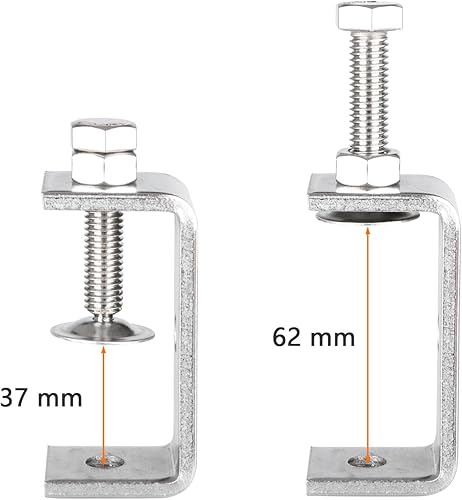 AKOLAFE 4 Stück C Zwingen 65mm C Klemme 65mm Schraubklemme 304 Edelstahl Roubste Trägerklemme Silbrige Tischklemme 37-62mm Schraubzwinge Für Holzbearbeitung, Schweißtischlerei, Tischlerei