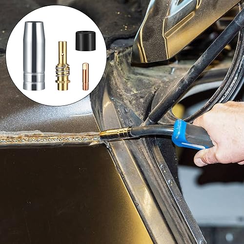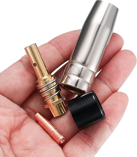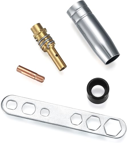 25 Stück Verschleißteile Set, Schutzgasschweißgerät Zubehör, Schweißzubehör passend AK-15/MB-15, 5 x Gasdüsen, 15 x Powerdüsen M6 0,8 mm, 2 x Düsenstiel, 2 x Isolatoren, 1 x Schraubenschlüssel