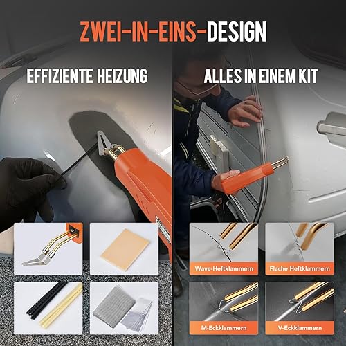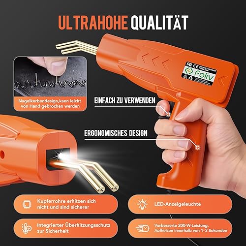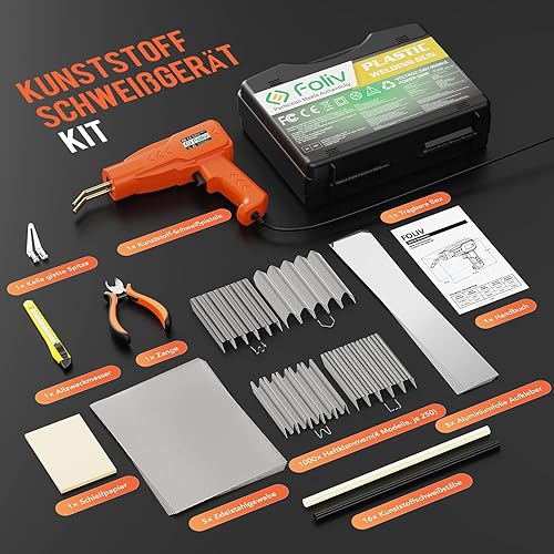 Foliv 200W Kunststoff Schweißgerät, Kunstoffschweißgerät Set, 2-in-1 Schweißen Maschine Auto Stoßstangen Reparatur Set mit 1000PCS Schweißnägel, 16 Kunststoffschweißstäbe&Schleifpapier, Zangen,Messern