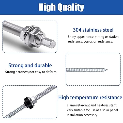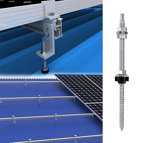 12 Stück Stockschrauben M10 x 200mm, Edelstahl Höhenverstellbar Stockschraube, Dübel für Photovoltaik Solarbefestigung auf Gebäudedächer