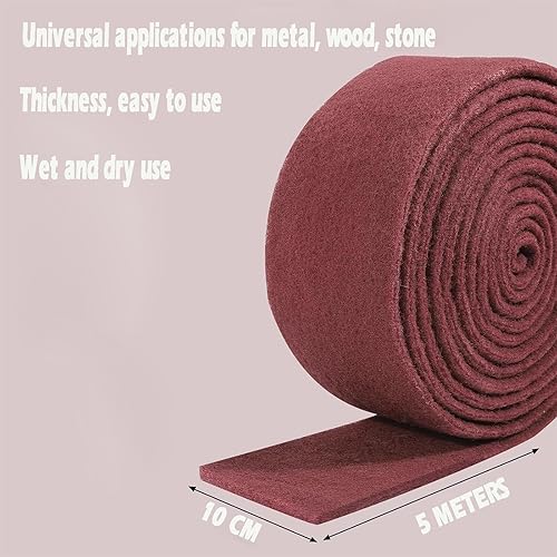 Weinsamkeit Schleifvlies, 5m x 100mm Korn 240 Langlebig Schleifvlies Rolle/Schleiffleece/Schleifpad für Holz, Metall, Edelstahl, Vliesstoff Fleece Gürtel, Metall Puffer Polierer für Schleifwerkzeu