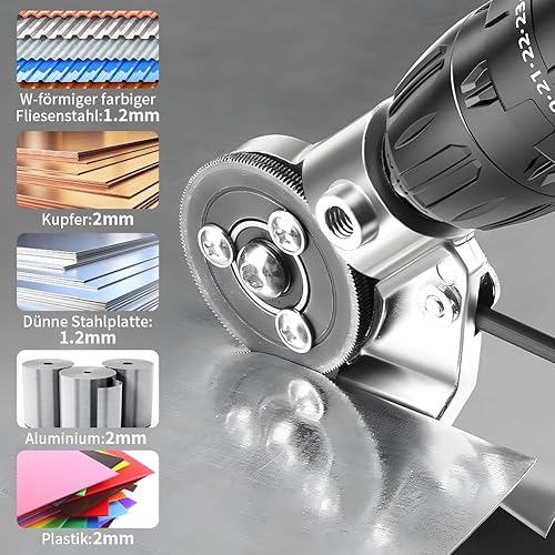 Blechschere für Akkuschrauber,blechschneider akkuschrauber,Blechknabber Aufsatz von Handbohrmaschine,Wird zum Schneiden von Eisen-, Stahl-, Kupfer- und Aluminiummetallen verwendet