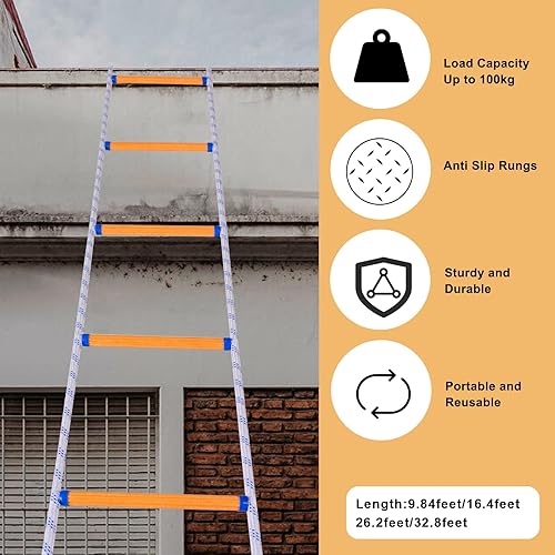 LZ.MZXU Strickleiter Feuerfeste Rettungsleiter, 5M Feuerleiter Strickleiter Notleiter Mehrzweckleiter Notfallsicherheit Tragbar Klettern Rettung Seilleiter für Fenster und Balkon(10mm)