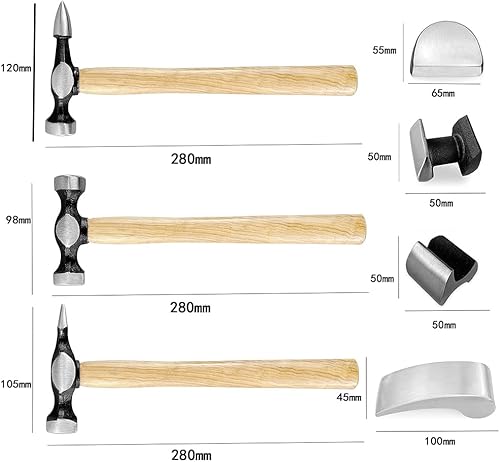 Blechhämmer,Hammerset Ausbeulwerkzeug satz,Hammer Richtsatz Ausbeulset,7-tlg inklusive Schlaghammer,Formblock,Griff aus Massivholz Bequemer strapazierfähiger für präzise Blechbearbeitung