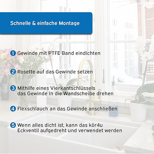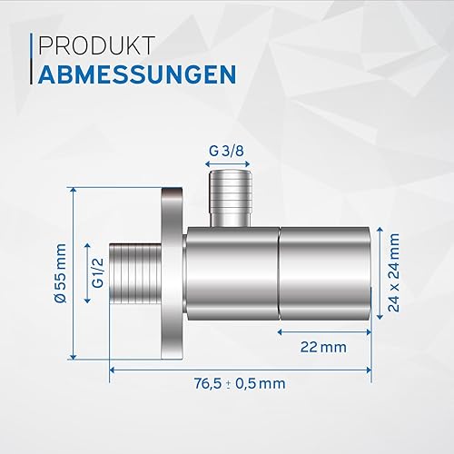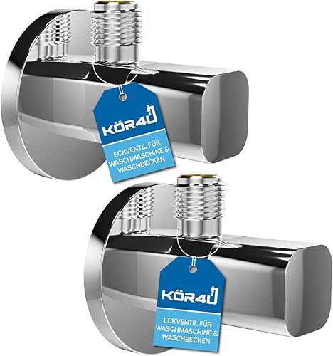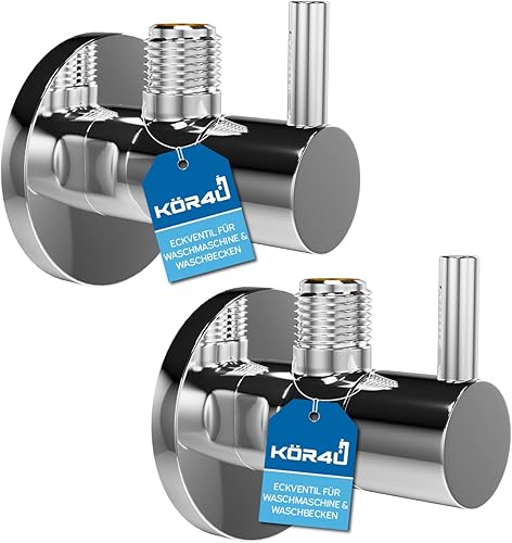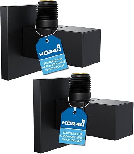 kör4u 2er Set Design Eckventil 1/2 x 3/8 Zoll, schwarz matt, eckiges Wasserabsperrventil, mit Schnellverschluss für Bad & Küche, inkl. Rosetten