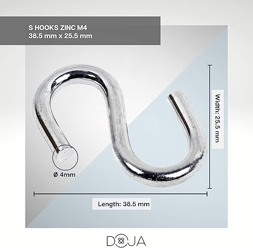 DOJA INDUSTRIAL | S Haken | M4 | PACK 25 | Verzinkter Stahl | Hacken zum Aufhängen von Werkzeugen, Kuechenutensilien | Kleiderhaken zum Aufhaengen von Kleidung, Kleiderstange, Garderobe Stange