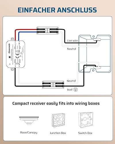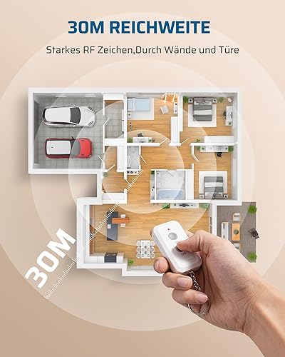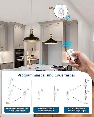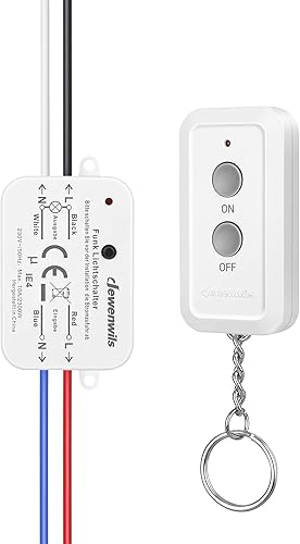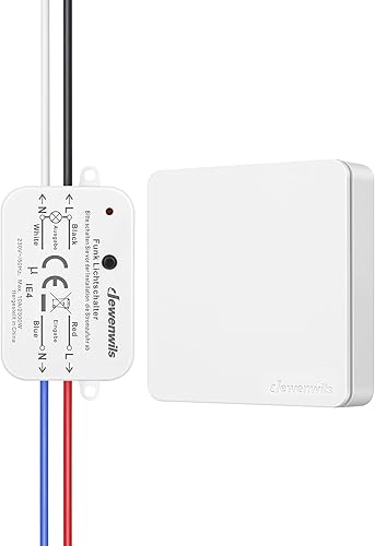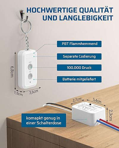 DEWENWILS Funkschalter, Funk-Wandsender 230V, Wandschalter mit Sender, 30M Reichweite, Kabellos Funk Lichtschalter Set für Lampe, Funktaster, Keine Verkabelung Erforderlich, 2300W, Weiß