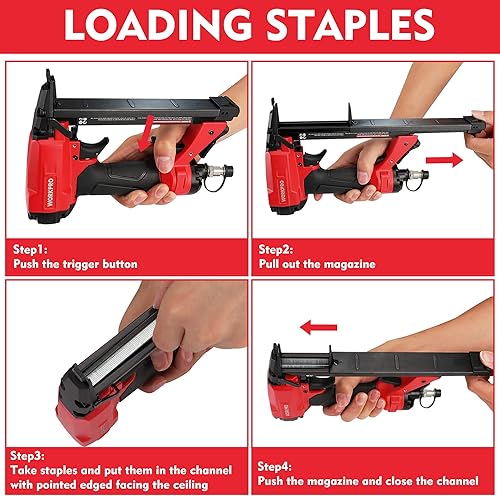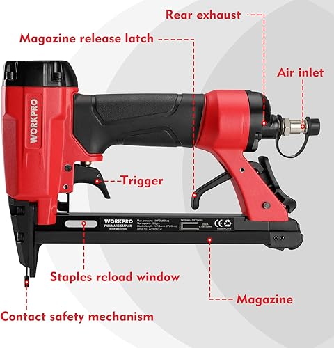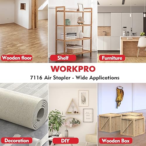 WORKPRO Drucklufttacker Druckluftpistole mit Sicherheitsnase, inkl. 1884 tlg. Klammern Typ 71, 6-16mm, Ölflasche, Innensechskantschlüssel für Möbelherstellung Holzbearbeitung DIY-Projekte