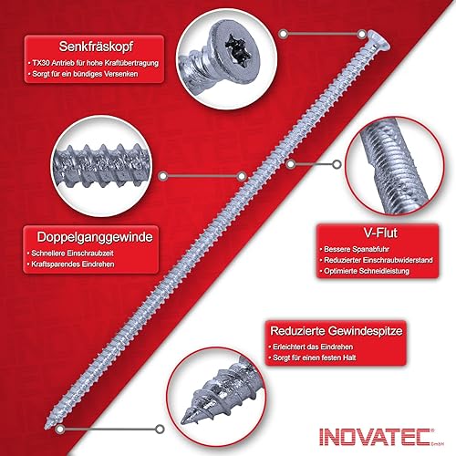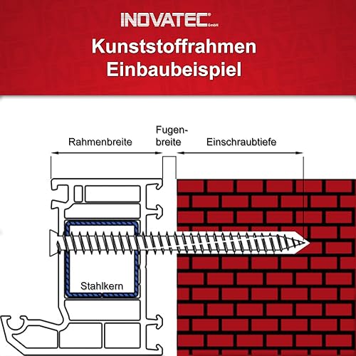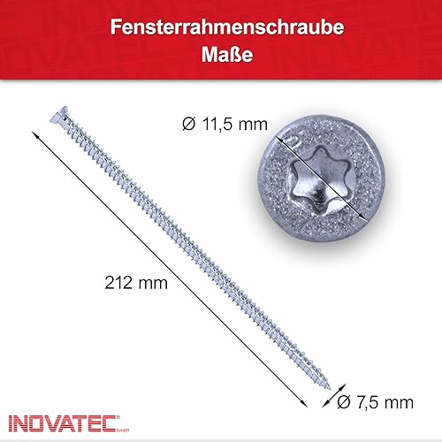 100 x INOVATEC Fensterrahmenschrauben TX30 Senkkopf 7,5 x 212 mm inkl. Bit