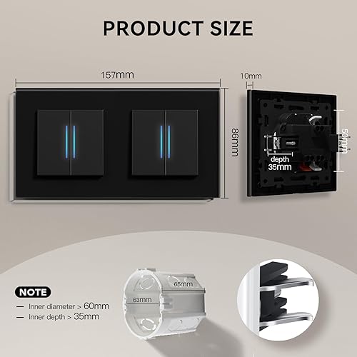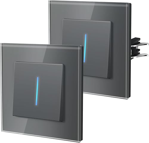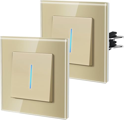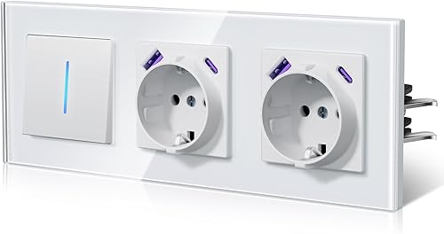 BSEED Lichtschalter aus Glas,Unterputz Schalter mit Krallen, Wechselschalter mit Hintergrundlicht, Einfach Montage, NEU E-Serie,1 Fach 1 Weg,86mm Weiß