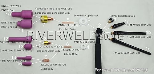 RIVERWELD WIG Gasspiegel Aluminiumoxid-Düse Keramikbecher #8 53N61S 12,5 mm für SR WP 9 17 18 20 25 26 TIG-Schweißbrenner Packung mit 10 Stück