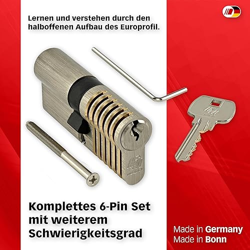 MULTIPICK Trainingszylinder Lockpicking Set - [Made in Germany] Lock Picking Tool - variables 6-Stift EU Übungsschloss - Schloss knacken - Ditrichsett & Trainingsschloss für Profis und Anfänger