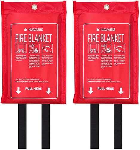 Navaris 2x Löschdecke aus Glasfaser 1,20 x1,20m - 2er Set Feuerlöschdecke Fettbrände - Brandschutzdecke Küche Auto - Feuerdecke Feuerlöscher Decke