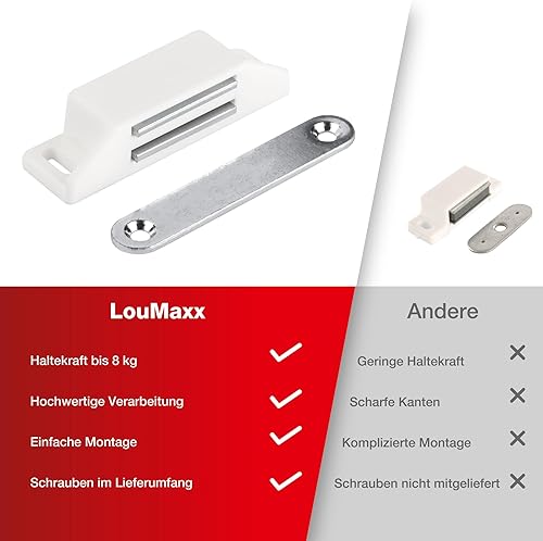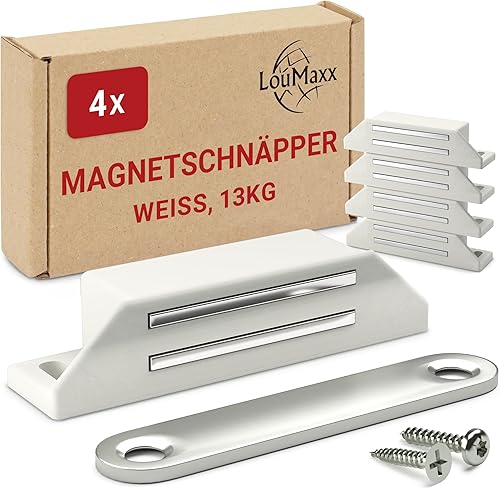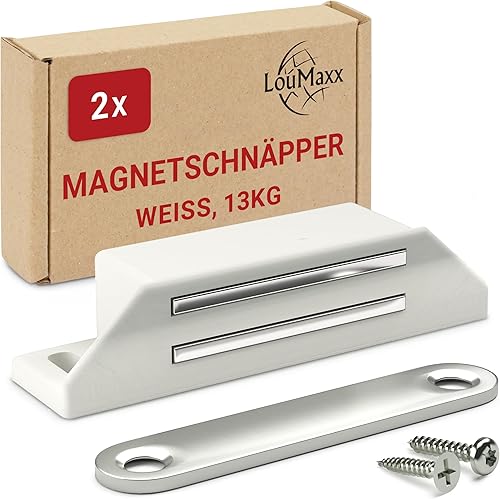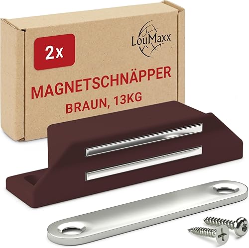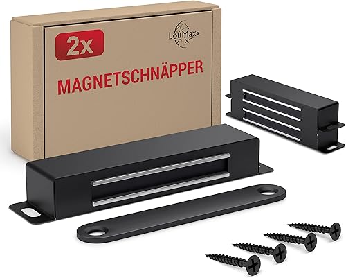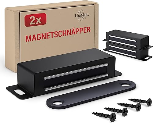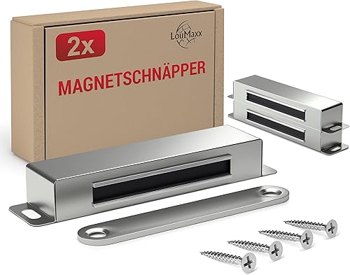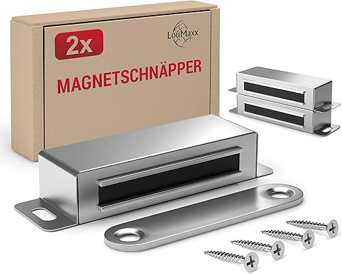 LouMaxx Magnetschnäpper stark - Haltekraft 15kg - 2er Set aus Edelstahl – Türmagnet - Schrankmagnet – Möbelmagnete – Tuer Magnetverschluss Edelstahl– Magnethalter Schranktür für sicheren Halt